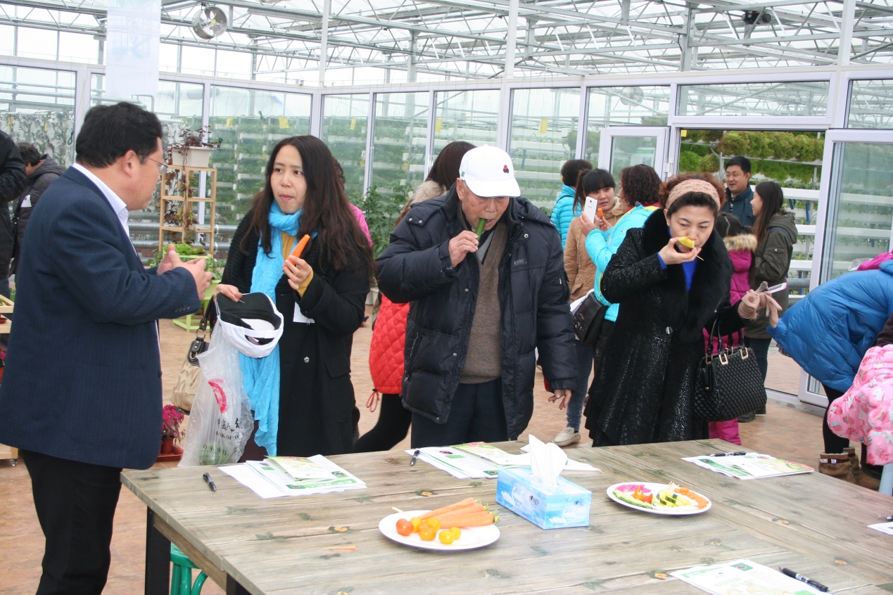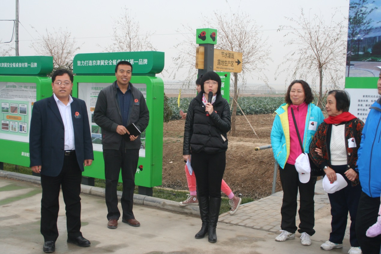 新苑阳光副总经理靳爱红致辞欢迎大家到基地体验参观,新苑阳光种植基淮学民淮工带着我们依次参观了陆地大棚、暖棚和农业智慧展示中心。我们亲身感受和见证了新苑阳光安全种植理念,安全食材的生长种植环境和过程。